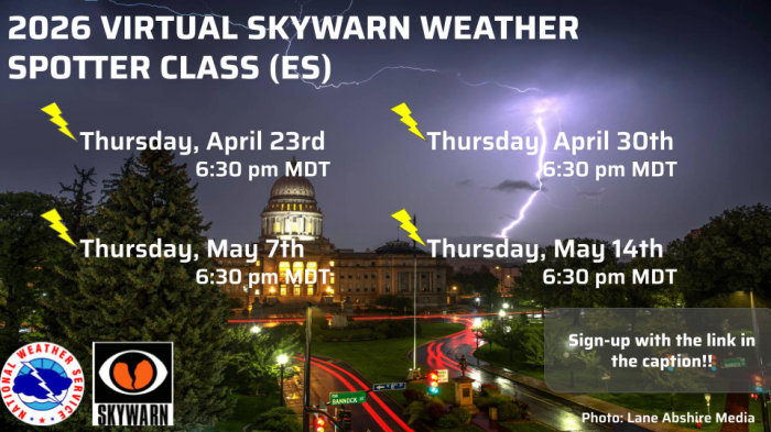 Calling all citizen scientists! Want to learn about storms and how to report severe weather, which helps you community and local NWS office Sign up for our virtual storm spotter training classes! We will host four virtual classes this year, register here: https://forms.gle/GDqT9eqEcifGBK1g6